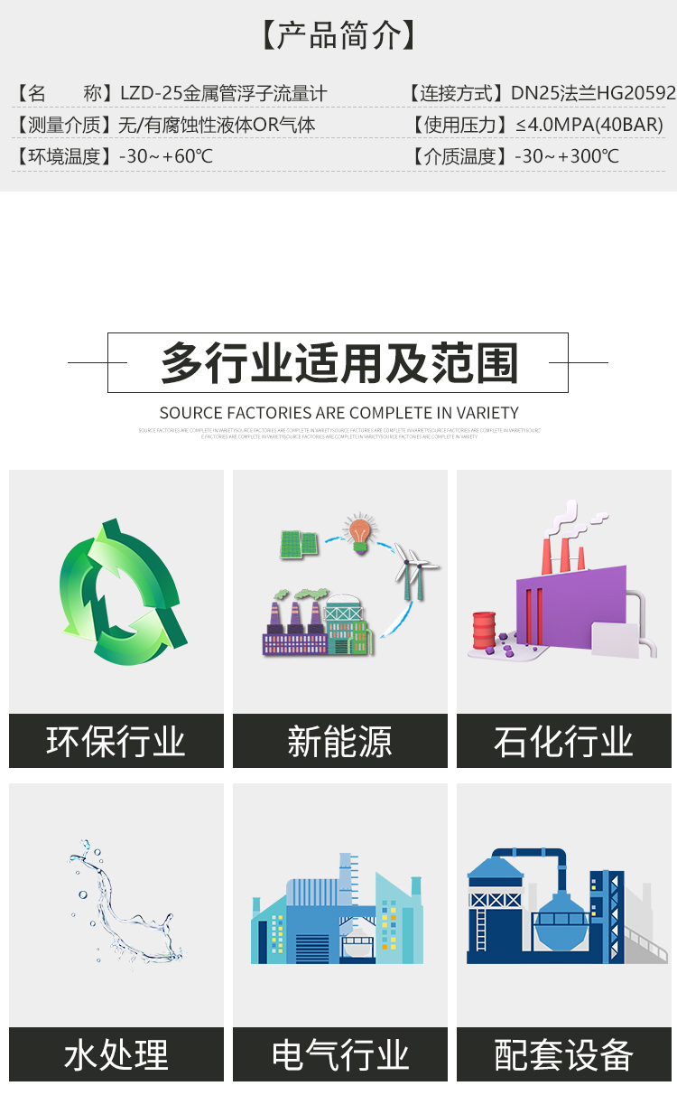 LZD-50/RR1/M9/B1遠傳型金屬管浮子流量計適用于小口徑和低流速介質 流量測量;工作可靠,維護量小,壽命長;金屬管浮子流量計對于直管段要求不高 ;較寬的流量比10:1;雙行大液晶顯示,可選現(xiàn)場瞬時/累計流量顯示,可帶背光 單軸靈敏指示;非接觸磁耦合傳動;金屬管浮子流量計全金屬結構,適于高溫、高 壓和強腐蝕性介質;可用于易燃、易爆危險場合;可選二線制、電池、交流供電方式;多參數標定功能;金屬管浮子流量計帶有數據恢復,數據備份及掉電保護功能.