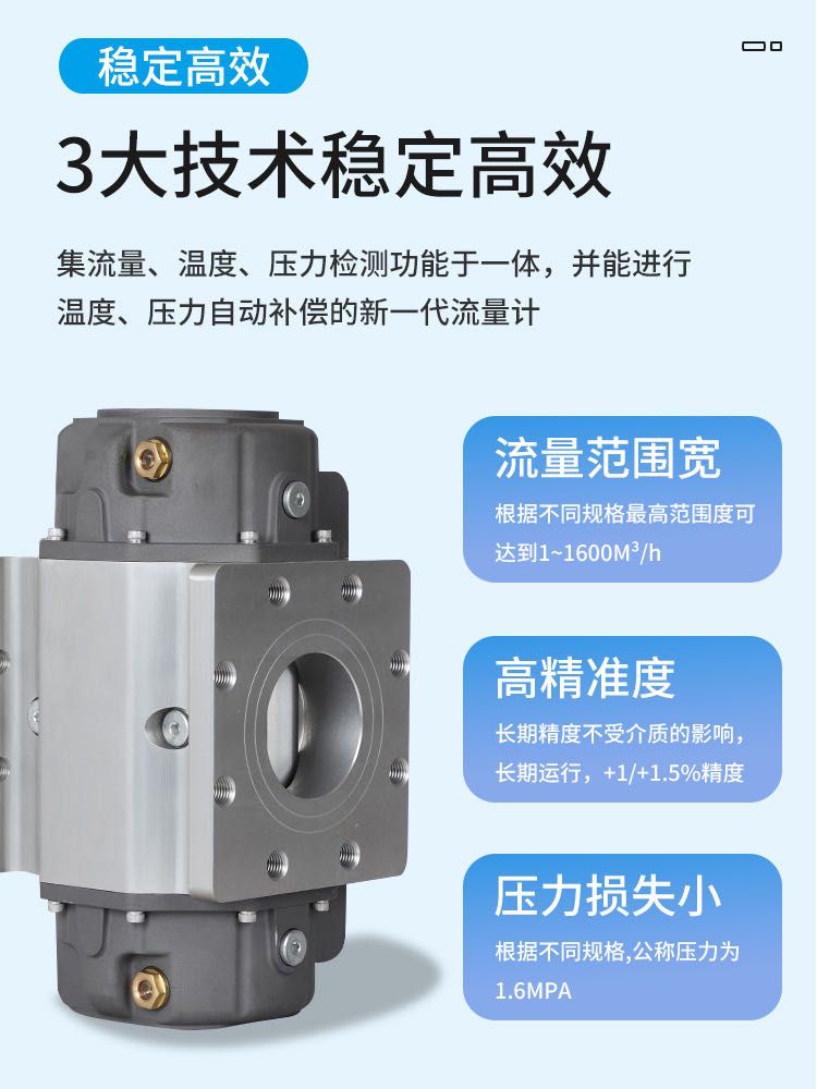 LLQ氣體羅茨腰輪流量計(jì)是一種廣泛應(yīng)用于工業(yè)氣體計(jì)量領(lǐng)域的高精度容積式流量儀表,尤其適合天然氣、煤氣、壓縮空氣等氣體的貿(mào)易結(jié)算和過程控制。以下從原理、優(yōu)勢、應(yīng)用場景、選型要點(diǎn)及技術(shù)參數(shù)等角度展開分析: 一、核心原理與結(jié)構(gòu)設(shè)計(jì)   1. 工作原理     基于容積式測量原理,通過兩個(gè)相互嚙合的“8字形”羅茨轉(zhuǎn)子在氣體推動下旋轉(zhuǎn),每轉(zhuǎn)一周排出固定體積的氣體。轉(zhuǎn)子的轉(zhuǎn)數(shù)與氣體流量成正比,通過傳感器檢測旋轉(zhuǎn)頻率即可計(jì)算累計(jì)流量和瞬時(shí)流量。   2. 核心結(jié)構(gòu)     - 轉(zhuǎn)子組件:高精度加工的合金鋼或鋁制轉(zhuǎn)子,表面硬化處理以降低磨損。     - 計(jì)量腔體:嚴(yán)格密封的腔體設(shè)計(jì),確保無泄漏。     - 溫度/壓力補(bǔ)償模塊(可選):集成溫壓傳感器,自動修正工況體積至標(biāo)況體積(如Nm3)。   二、顯著優(yōu)勢與適用場景   1. 核心優(yōu)勢     - 高精度:典型精度±1.0%,貿(mào)易級儀表可達(dá)±0.5%。     - 寬量程比:通常1:10~1:30,適應(yīng)流量波動大的場景。     - 低始動流量:可檢測微小流量(如0.1m3/h),適合低流速氣體計(jì)量。     - 抗震性強(qiáng):無電子直觸部件,抗管道振動性能優(yōu)于渦街流量計(jì)。   2. 典型應(yīng)用行業(yè)     - 能源領(lǐng)域:天然氣門站計(jì)量、LNG加氣站、城市燃?xì)廨斉洹?    - 工業(yè)流程:化工廠反應(yīng)氣體配比、鋼鐵廠高爐煤氣回收。     - 環(huán)保監(jiān)測:沼氣發(fā)電計(jì)量、碳排放氣體流量統(tǒng)計(jì)。   三、選型關(guān)鍵參數(shù)與注意事項(xiàng)   1. 介質(zhì)特性適配     - 清潔度要求:若氣體含粉塵或液滴,需加裝過濾器(如天然氣中的雜質(zhì)過濾)。     - 腐蝕性氣體:可選不銹鋼或特殊涂層轉(zhuǎn)子(如H?S含量高的煤氣)。   2. 流量范圍匹配     | 口徑(DN) | 最小流量(m3/h) | 最大流量(m3/h) |     |------------|------------------|------------------|     | 50         | 5                | 250              |     | 100        | 20               | 1000             |     | 200        | 100              | 4000             |   3. 壓力與溫度限制     - 標(biāo)準(zhǔn)耐壓:1.6MPa(可定制至4.0MPa)。     - 溫度范圍:-30℃~+80℃(高溫型可達(dá)+120℃)。   4. 附加功能選擇     - 智能通訊:支持Modbus、HART協(xié)議,兼容工業(yè)物聯(lián)網(wǎng)(IIoT)系統(tǒng)。     - 防爆認(rèn)證:Ex dⅡCT6,用于化工、礦井等危險(xiǎn)區(qū)域。   四、與渦街流量計(jì)的對比   | 對比項(xiàng)       | 羅茨流量計(jì)                | 渦街流量計(jì)                |   |------------------|-------------------------------|-------------------------------|   | 測量原理     | 容積式                        | 速度式(卡門渦街)            |   | 適用介質(zhì)     | 中低流速、高粘度氣體          | 大流量、低粘度氣體/蒸汽       |   | 壓力損失     | 較高(需考慮管道壓降)        | 較低                          |   | 維護(hù)需求     | 定期潤滑轉(zhuǎn)子軸承              | 無活動部件,免維護(hù)            |   五、維護(hù)與校準(zhǔn)建議   1. 周期性維護(hù)     - 每6個(gè)月檢查轉(zhuǎn)子磨損情況,清潔過濾器。     - 每2年對軸承進(jìn)行潤滑(食品級潤滑脂)。   2. 校準(zhǔn)要求     - 貿(mào)易結(jié)算用儀表需每年進(jìn)行實(shí)流標(biāo)定(如鐘罩式氣體流量標(biāo)準(zhǔn)裝置)。     - 現(xiàn)場校準(zhǔn)可采用超聲波比對法,誤差超過±1.5%時(shí)需返廠調(diào)整。   總結(jié)   氣體羅茨流量計(jì)憑借其高精度、寬量程和強(qiáng)環(huán)境適應(yīng)性,成為工業(yè)氣體計(jì)量的首選設(shè)備之一。在選型時(shí)需重點(diǎn)關(guān)注介質(zhì)清潔度、流量范圍匹配及智能化需求,同時(shí)結(jié)合現(xiàn)場工況選擇是否需要溫壓補(bǔ)償或防爆設(shè)計(jì)。對于高含雜質(zhì)的煤氣或微小流量場景,其性能顯著優(yōu)于渦街流量計(jì),但需承擔(dān)更高的維護(hù)成本。